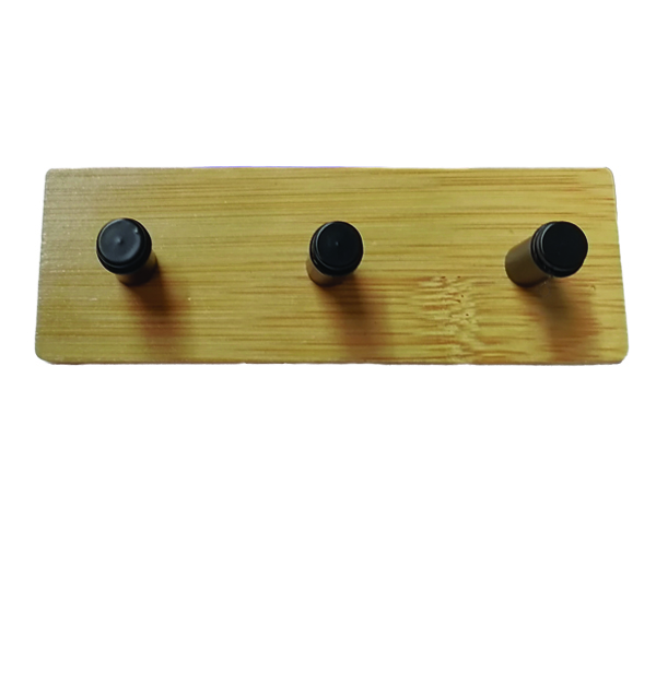 Ξύλινο αυτοκόλλητο κρεμαστράκι 3 θέσεων μαύρος γάντζος [00402687]