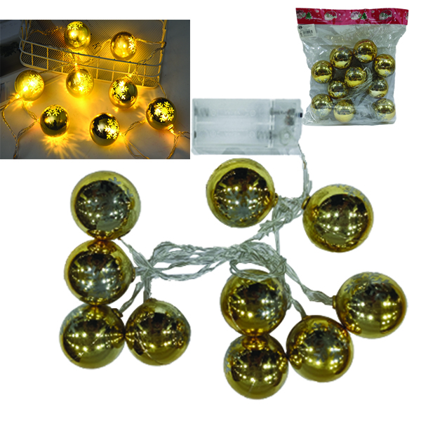 Σετ 10 λαμπάκια μπαταρίας μπαλίτσες χρυσές [00001955]