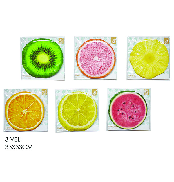 Σετ 12 χαρτοπετσέτες τρίφυλλες 33x33cm “φρούτα” [77695179]