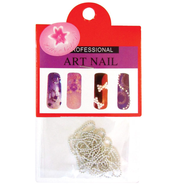 - Ασημί διακοσμητική αλυσίδα νυχιών σε συσκευασία blister